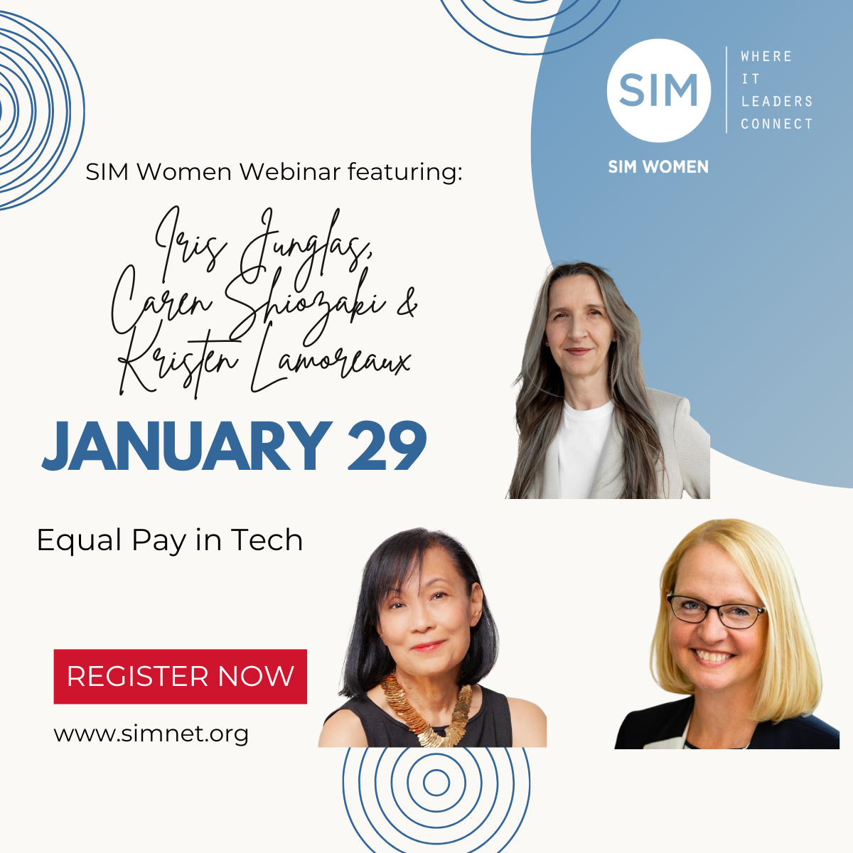 SIM Women is a network inside the SIM national association that promotes mentorship, communication, and career development amongst the female members of SIM. We are excited to host our next webinar on Wednesday, January 29th at 3pm ET for a panel discussion on “Equal Pay in Tech” featuring Iris Junglas, Executive Editor of MIS Quarterly Executive, Caren Shiozaki, C-Suite Leader, Board Advisor and DigiRisk Co-Chair, and yours truly, Kristen Lamoreaux, Founder of SIM Women. Why us? Caren and I were asked to write a response paper to an article MISQE was publishing titled, “Do women make less than men in IT? Yes and No.” Really? Where’s the “No”??? Iris, Caren, and I had A LOT to share! Our discussion for this webinar will go beyond the two articles, and will focus on the problem, potential solutions, and personal accountability.
